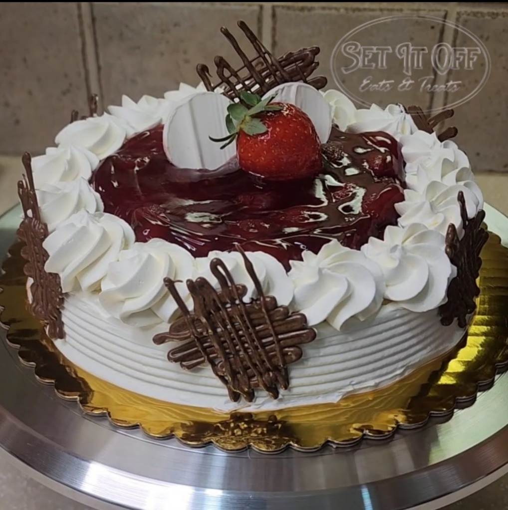 This cheesecake has all the bells and whistles and is truly cheesecake royalty. The recipe packs a rich, cream cheese flavor and sits on a graham cracker crust. It can be topped with your favorite topping. It is then finished with whipped topping and hand-crafted chocolate decoration. If you are a cheesecake lover, this will not disappoint you.