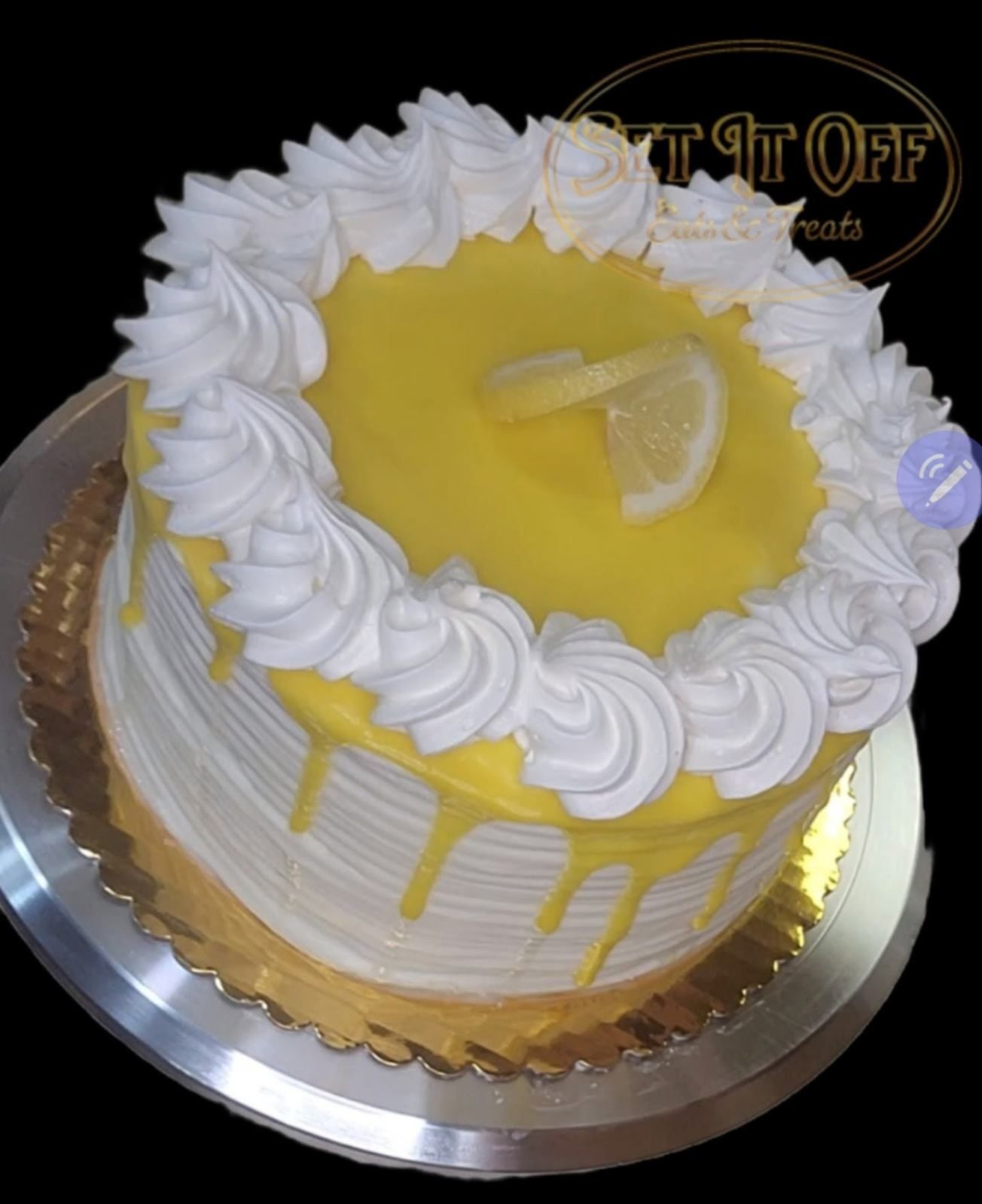 Lemon Dream is a delightful cake with its four layers filled with a zesty, homemade lemon creme filling and iced with lemon buttercream and completed with a drip edge around its circumference with whipped topping rossets. This cake is 4.5 inches to 5.5 inches tall.